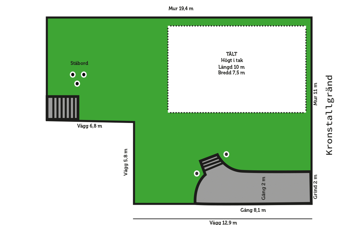 Platsen är centralt beläget, ca 100 m från Donners Plats och ett område där många passerar. En perfekt yta för tält och er kommunikation.